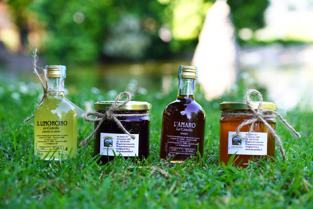 Tutti i prodotti vengono utilizzati nella cucina dell’agriturismo: ortaggi, frutta, frutti di bosco, miele e carni bovine provenienti dalle manzette allevate in loco. Le carni suine e i salumi sono lavorati da un’azienda agricola partner di Brivio (LC), mentre formaggi, uova, riso, vino e olio arrivano da realtà lombarde selezionate. In vendita si possono trovare anche confetture, biscotti di frolla, liquori e miele millefiori prodotto dalle arnie dell’azienda.